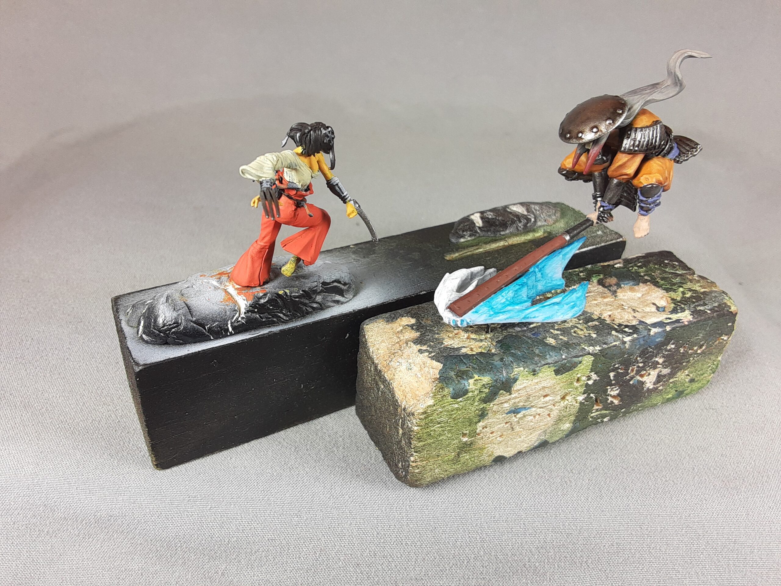 One of my very first commissions, some Malifaux Figures from Wyrd Games I think. I was just starting out, but these came out really nice. I did NOT do the basing on the final figures.